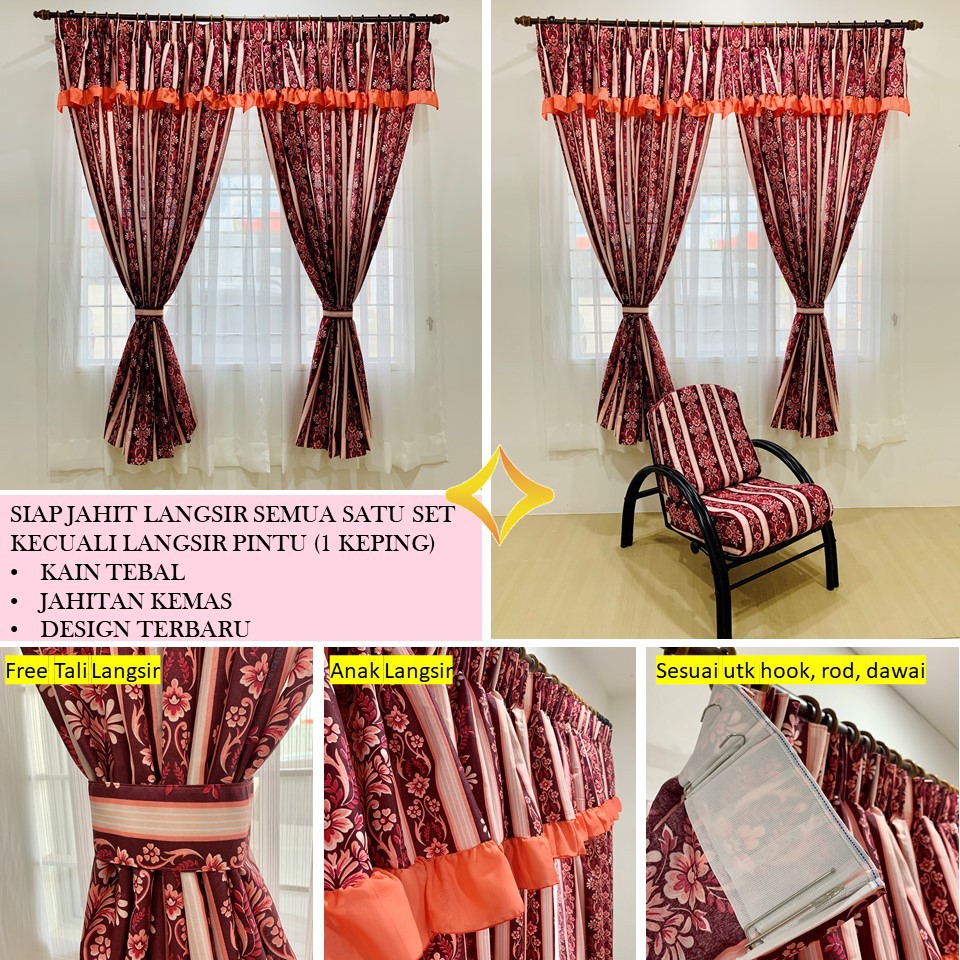 Langsir Ready To Sewing Free Rope Ready Made Curtain Free Tieback Langsir Sliding Door 2 Panel 3 Bilik Door Panel Shopee Singapore